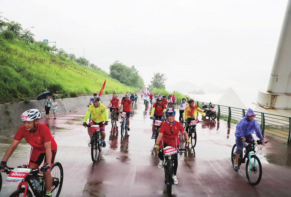 在短暫的熱身運動后,騎行活動正式開始。韓宗桂等領(lǐng)導帶隊率先出發(fā),各支騎行隊伍緊隨其后,一條紅色的火焰瞬間在柳江河畔蔓延開來。騎手們克服雨天路面濕滑的困難和考驗,用手去擦拭流入眼睛的雨水,避免影響視線。大家在騎行過程中相互鼓舞、相互扶持,不拋棄、不放棄,將柳鋼人團結(jié)互助、不畏艱險的精神發(fā)揚光大,參與的職工全部都順利完成了此次騎行。
